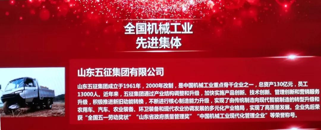 喜報丨五征集團榮獲“全國機械工業先進集體”稱號