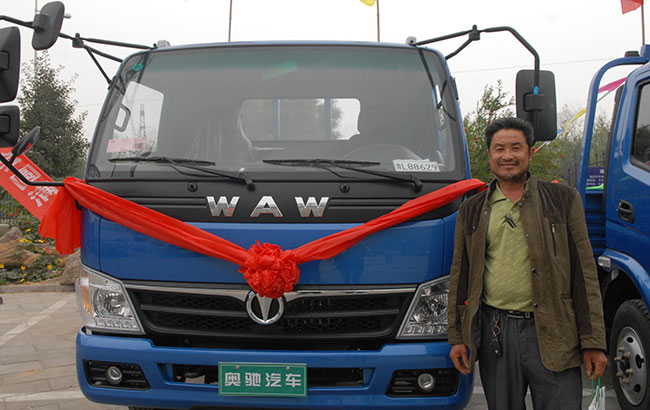 在唐山市,通過老丁介紹買上五征產品而發家致富的已經不下百人,老丁也成了當地修車行業里的“五征老熟人”。就在2014年綠色奧馳中國萬里行走進唐山的活動中,老丁推掉了所有的活,專程跑去奧馳全新一代國IV汽車的試乘試駕現場,并在現場選定了兩臺奧馳汽車。當將紅綢掛在奧馳車上時,喜滋滋的老丁又開始盤算著如何開拓自己業務。他說:有了奧馳車,他對的未來很有信心。