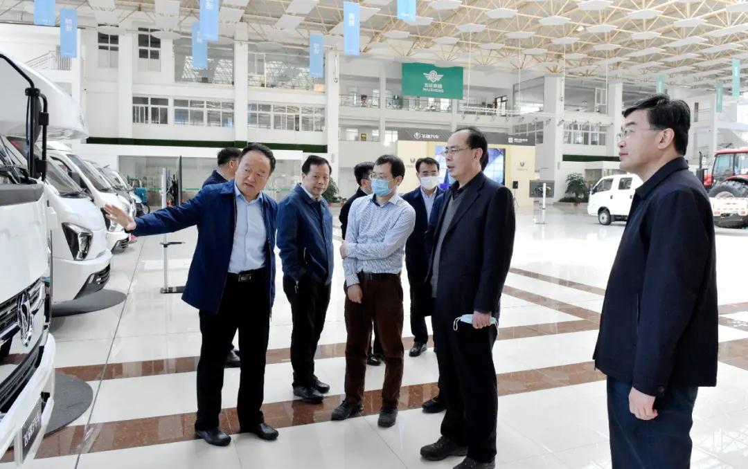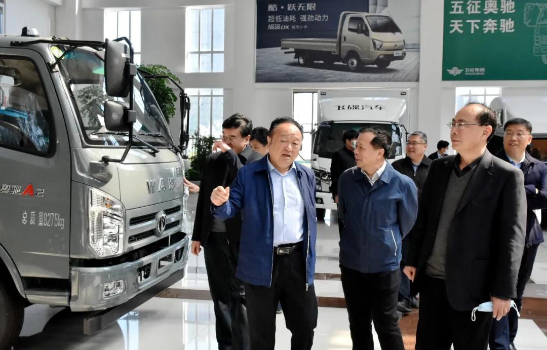 姜衛東董事長陪同宋志明一行來到五征會展中心,在屏幕前,宋志明一行觀看了五征產品介紹以及核心制造能力視頻,聽取了姜衛東董事長對企業發展情況以及疫情期間復工復產等方面的相關情況匯報,對五征自動化、智能化制造能力及產品水平頻頻稱贊。