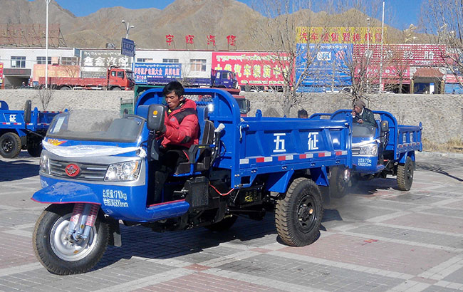 就這樣,格桑購買了一臺五征車——五征金玉虎三輪車,在聶拉木縣民政局拉點雜物,閑時借給親戚搞點貨運出租。買了一輛五征車之后,格桑切切實實地感受到了五征車的優勢,對五征車頗有些相逢恨晚的味道,從此一發不可收拾。這不,接下來格桑又接連購買了神州虎盤半、奧翔1600盤半兩輛三輪車,前幾天又買了一輛奧翔1600新三人座椅車型,與五征結下了不解之緣。
