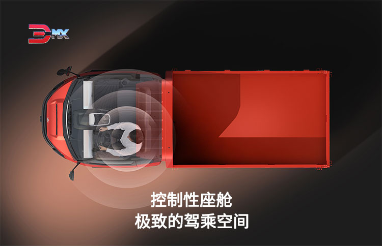 對標國際前沿的駕駛室空間的設計理念,通過優化前懸結構將駕駛室空間提升60%,讓各種身形的用戶都能舒適乘坐,并且增加了個人物品及貨物的存儲空間。